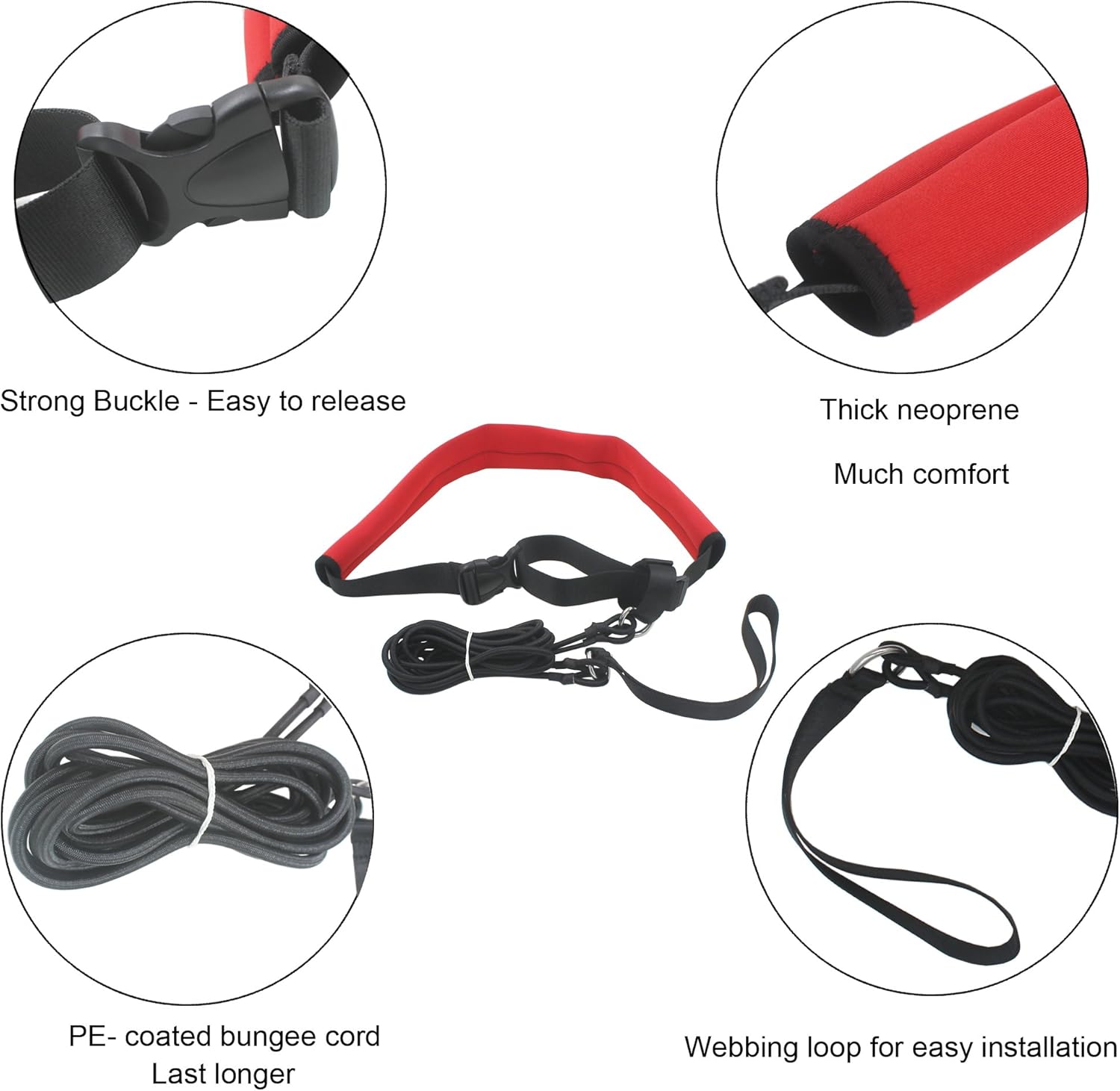 - Includes one waist strap and bungee cord